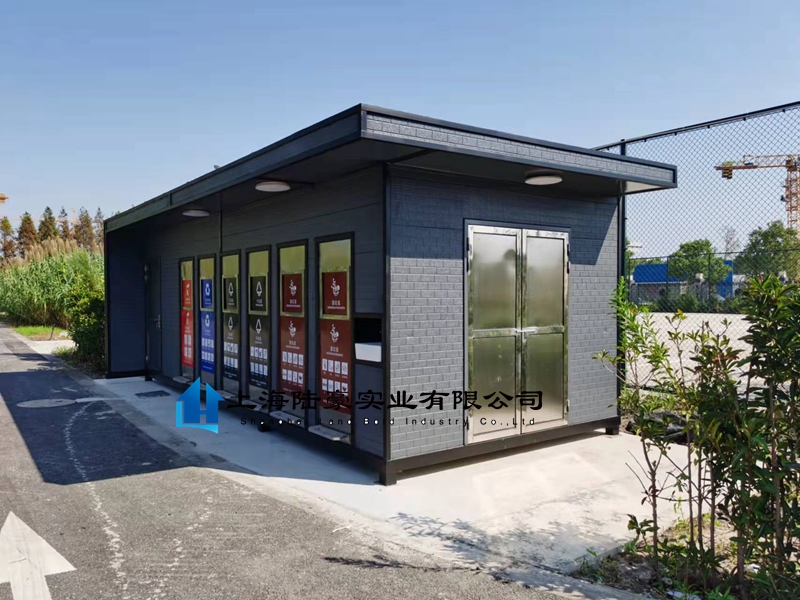 產品編號:垃圾房C-45(大型垃圾分類收集房) 規格尺寸:8.0*3.0*2.8米(可定制各種規格) 制作工藝:鋼結構龍骨焊接一體成型,外墻為金屬雕花板